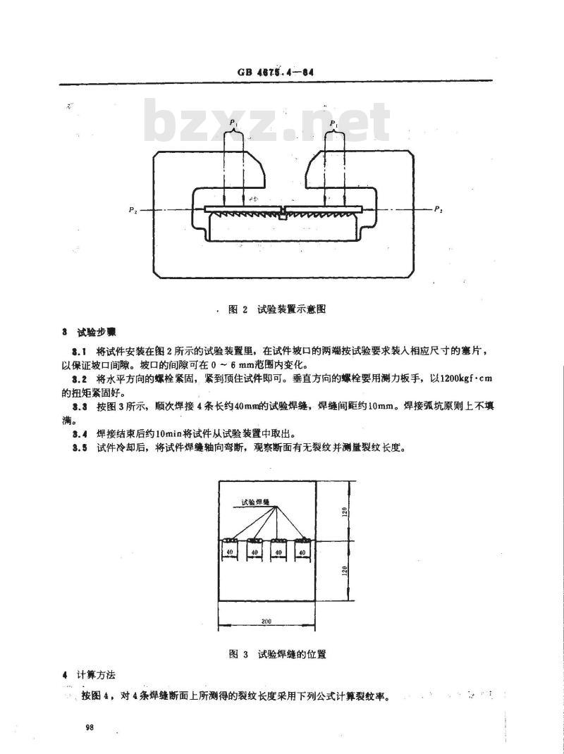 ,按图4,对4条焊缝断面上所测得的裂纹长度采用下列公式计算裂率。98