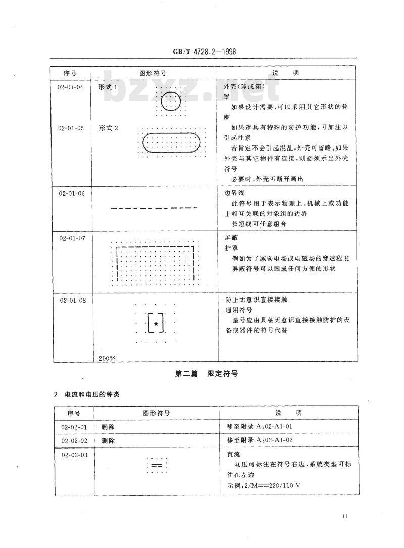 本标准是对GB4728.2-84《电气图用图形符号第2部分符号要素、限定符号和其他常用符号》的修订,与GB4728.2--84相比,本标准的符号归类和类别名称有较大变动;删掉了GB1728.2--84的 02-02-0102-02-02、02-02-12.02-06-06、02-14-06,02-14-07,02-14-08.02-14-09、02-17-03.02-17-04、02-17-05.02-17-06等12个符号,新增了02-01-08、02-08-06、02-08-07、02-09-04、02-09-05、02-13-28、02~17-06A等7个符号;符号02-17-07调整到GB4728.7;原02-15-05转到02-15-04条说明栏。GB4728.2是系列标准《电气简图用图形符号》的一个部分。该系列标准包括如下部分: