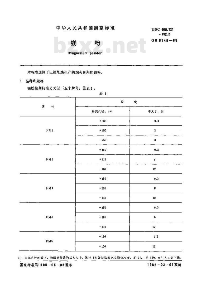 GB 5149-1985 镁粉 GB5149-1985 标准下载解压密码:www.bzxz.net