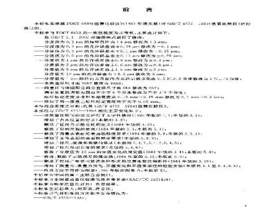 分度值为5u的允许送出1.5m收=3Jm分度值;12的充许煤差小12.5修改为3m分度值为m的格间及向力充许系值变化由.5,C.分度改为1.分变实商直径尺出28h7将改为23hs:--理地可测相配合部分直径尺寸由E修改为7阅零装需的调恼也国由不少于七个分坐静收为不少」5个分度:标尺标记充度及智针末端宽度由C.5mm1~~3.25mm候改为c,1mm~0.2mrlz增了同一度标尺标记宽度均不大于U.(S13m。本球座自实范之日起.代替G47551S841扭策比较仪3。本标注与G7—19相比主化如下:对拥替比较发的定义并行了交学件像政(:982年版的,1:本验的3.1)增加!自位置的宠义(年版的32删款:径向力示值令化的定义(1084年度的1,3)修改「影哺外观的要求(1S84年版的3.1:术版的三.1);修改了测量头表面能表面扭趋度要求(1984 年版的 3. 9;本版的 3. 3. 1);增加了会第表面的表面相赖单要求(本版的.3.3);地标尺度盘和表索净要求(车版的5,4.1.3..2,5..3)增加:标尺标记长度的要求(本版的3,1.)1修改?分度为19m的不值变化的现是值(1R牛版的.11车版5.:-接收,册除下小值误差的规定值184年版的312,本版5.3删余了按用,要求可供各升式的劳比较收和降件(194年报的3.15:增加门测量方、衡量力变化、示值变化利示值变动性的检验方偿(本版的3.1至6.3、5.5);检学次法不再作为附录:年版的附录A:本版的S)本校作中国机械!业联合会: