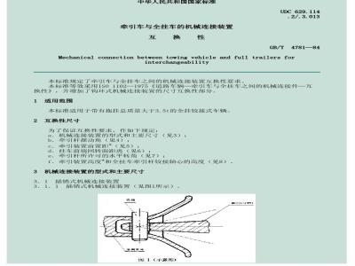 本标准规定了牵引车与全挂车之间的机械连接装置互换性要求。本标准适用于带有拖挂总质量大于3.5t的全挂铰接式车辆。 GB/T 4781-1984 牵引车与全挂车的机械连接装置互换性 GB/T4781-1984 标准下载解压密码:www.bzxz.net