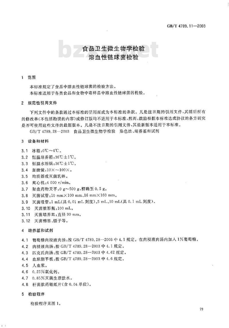 本标准对GB/T4789.11—1994《食品卫生微生物学检验溶血性链球菌检验》进行修订。本标准与GB/T4789.11—1994相比主要修改如下:按照GB/T1.1—2000对标准文本的格式和文字进行修改。-修改并规范原标准中的“设备和材料”。本标准自实施之日起,GB/T4789.11—1994同时废止。本标准由中华人民共和国卫生部提出并归口。本标准起草单位:北京市卫生防疫站、中国疾病预防控制中心营养与食品安全所。本标准主要起草人:刘以贤、冉陆、付萍、姚景会。本标准于1984年首次发布,1994年第一次修订,本次为第二次修订。78