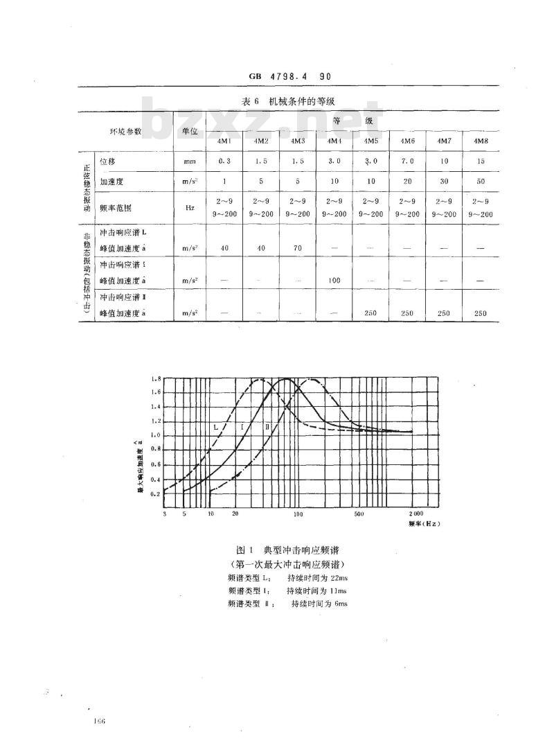 4.6.3机械环境参数及其等级见表6。典型冲击响应频谱见图1。表1气候条件的等级
