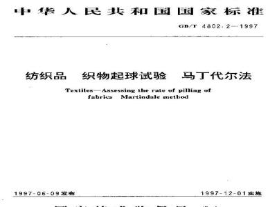法,对GB4802.2-94物起球试验方法可T代尔(MErndale)到仪法进行修订.本标准继年了原标准的重要技术内穿,并对标声的章书却编排等连行编性修改。本标准以生效之日起,同时代替GB4502.2一84本标雅出中国药筑总会科技发展游提:本标准由中国药组总会标准化研究所口,本标雅起益单立:上海纺织科学研究院本标难车要起毕人闲叫芳。