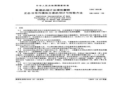 1.7对于个别可疑的数据不能任意剔除或修正,具体处理办法见GB4883--85《数据的统计处理和解释正态样本异常值的判断和处理》。1.8在统计计算时,要给出观测值的来源和收集方法等有关信息。1.9在统计计算时,通过改变原点或单位常可使计算简化。1.10本标准系参照国际标准ISO2854《数据的统计解释一均值和方差的估算与检验方法》(1976年第一版)制订的。