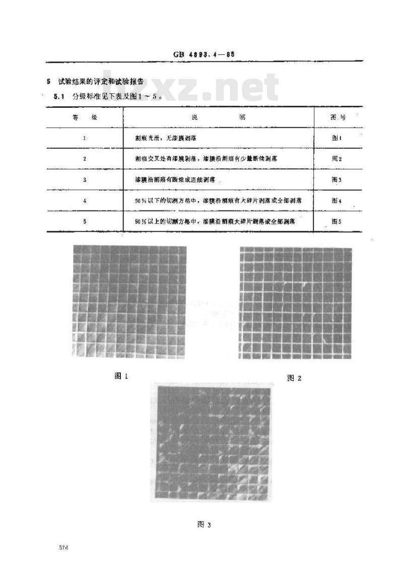 %以下的切游方格中,谈膜浮胡疯有大辞片剥落或全部剩落5%以上的划潮方格中,漆膜沿割衰大碎片别落或全部测落图1
