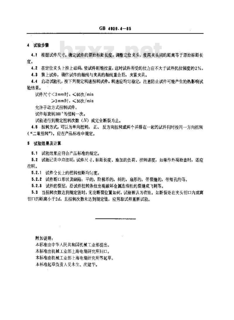 5.1试验结果应符合产品标准的规定。5.2试验记录中应注明:试件尺寸、标距长度,施加的负荷、扭转速度,如果作外观检查时,还应明。
