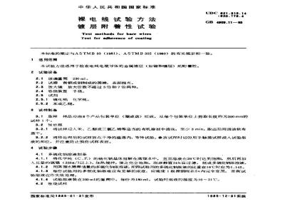 本试验方法适用于检查电线电缆导体的金属镀层(如锡和镍层)的附着性。 GB 4909.11-1985 裸电线试验方法 镀层附着性试验 GB4909.11-1985 标准下载解压密码:www.bzxz.net