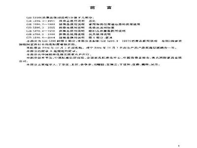 本部分为GB5296的第6部分,本部分想折安B5296.1:19979说费品使用说明总则3的要求和我围案具行业的实际需要制定的,本标准自204年10月1F起实施。对于2004年1月1月前生产的产品实随过滤期为一年本部分的附录A是规范性附求,