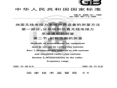GB4958.6地面无线电接力系统所用设备的测量方法第二部分:分系统的测量第五节频国家技术监督局1992-10-06批准1993-05-01实施