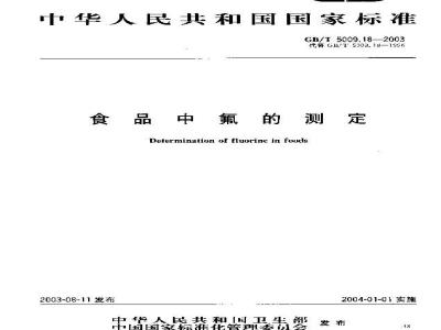本标准规定了粮食、蔬菜、水果、豆类及其制品、肉、鱼、蛋等食品中氟的测定方法。本标准适用于食品中氟的测定。氟离子选择电极法不适用于脂肪含量高而又未经灰化的试样(如花生、肥肉等)。本方法检出限:第一法为0.10mg/kg,第二法为1.25mg/kg。 GB/T 5009.18-2003 食品中氟的测定 GB/T5009.18-2003 标准下载解压密码:www.bzxz.net
