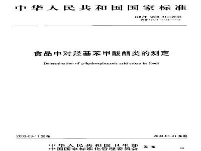 食品中对羟基苯甲酸酯类的测定Delerminalinm nf p-hydroxybcnzoic ncid esters in foods2003-08-11发布