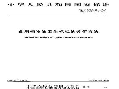 食用植物油卫生标准的分析方法本标准规定了食月摘物油的准标的分析方法。标准适用于负用植物油卫生充标的分析GB/T5009.37--20Q3