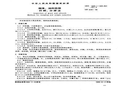 2.2.1.3扦样:按区按点,先上后下逐层扦样。各点扦样数量一致。2.2.1.4散装的特大粒粮食和油料(花生果、大蚕豆、甘片等),采取扒堆的方法,参照“分区国家标准局1985-11-02发布