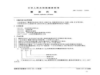 本标准规定了震源药柱的技术要求、试验方法、检验规则及标志、包装、运输、贮存等内容。本标准适用于以铵梯炸药、胶质炸药为主装药的震源药柱的生产验收。2引用标准