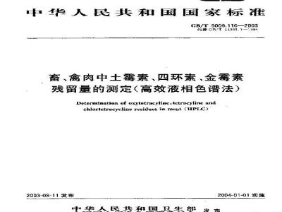 畜、禽肉中土露素、四环素、金霉素残留量的测定(高效液相色谱法)Betermination f oxytetracyline,etracyline andchlortetracyeline Fesidues in naeal (HPC)2003-08-11发布