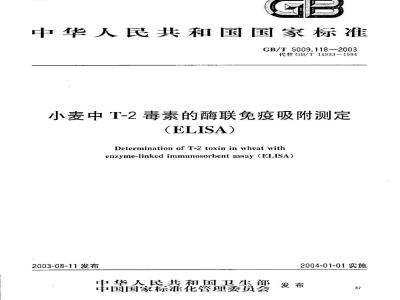 Determination of T-2 toxin in wheat withenzyme-linked immunosorbent assay (ELISA)2003-08-11发布