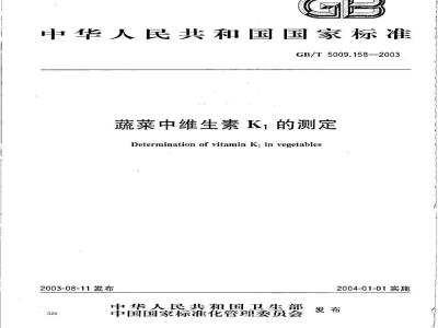 本标准规定了蔬菜中维生素K,的测定方法。本标准适用于各类蔬菜、绿色植物及其干制品中维生素K,的测定。本标准方法出限为0.5Kg,线性范围为1Kg/mL-100Kg/mL, GB/T 5009.158-2003 蔬菜中维生素K1的测定 GB/T5009.158-2003 标准下载解压密码:www.bzxz.net