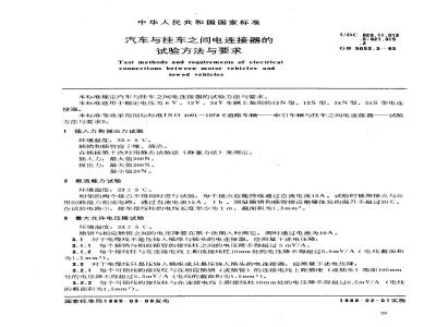 本标准规定汽车与挂车之间电连接器的试验方法与要求。本标准适用于额定电压为6V、12V、24V车辆上装用的12N型、12S型、24N型、24S型电连接器。本标准等效采用国际标准ISO 4091-1978《道路车辆——牵引车辆与挂车之间电连接器——试验方法与要求》。 GB/T 5053.3-1985 汽车与挂车之间电连接器的试验方法与要求 GB/T5053.3-1985 标准下载解压密码:www.bzxz.net