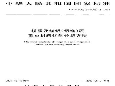 Chmical analysis of magnesia and magnesia-alumina refraciory malerials2001 - 12 . 17 发布