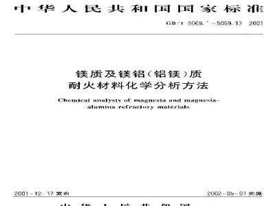 Chemical analysis of magnesia and nagutsiaalumina refractnry malerials2001-12.17 发布