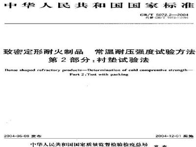 G/T50724致密完形耐火制品常温附压强麦试验方法分为两个部分第1部分:元衬垫中需试验