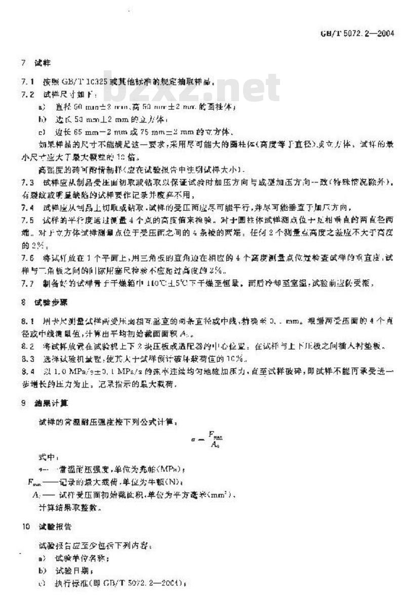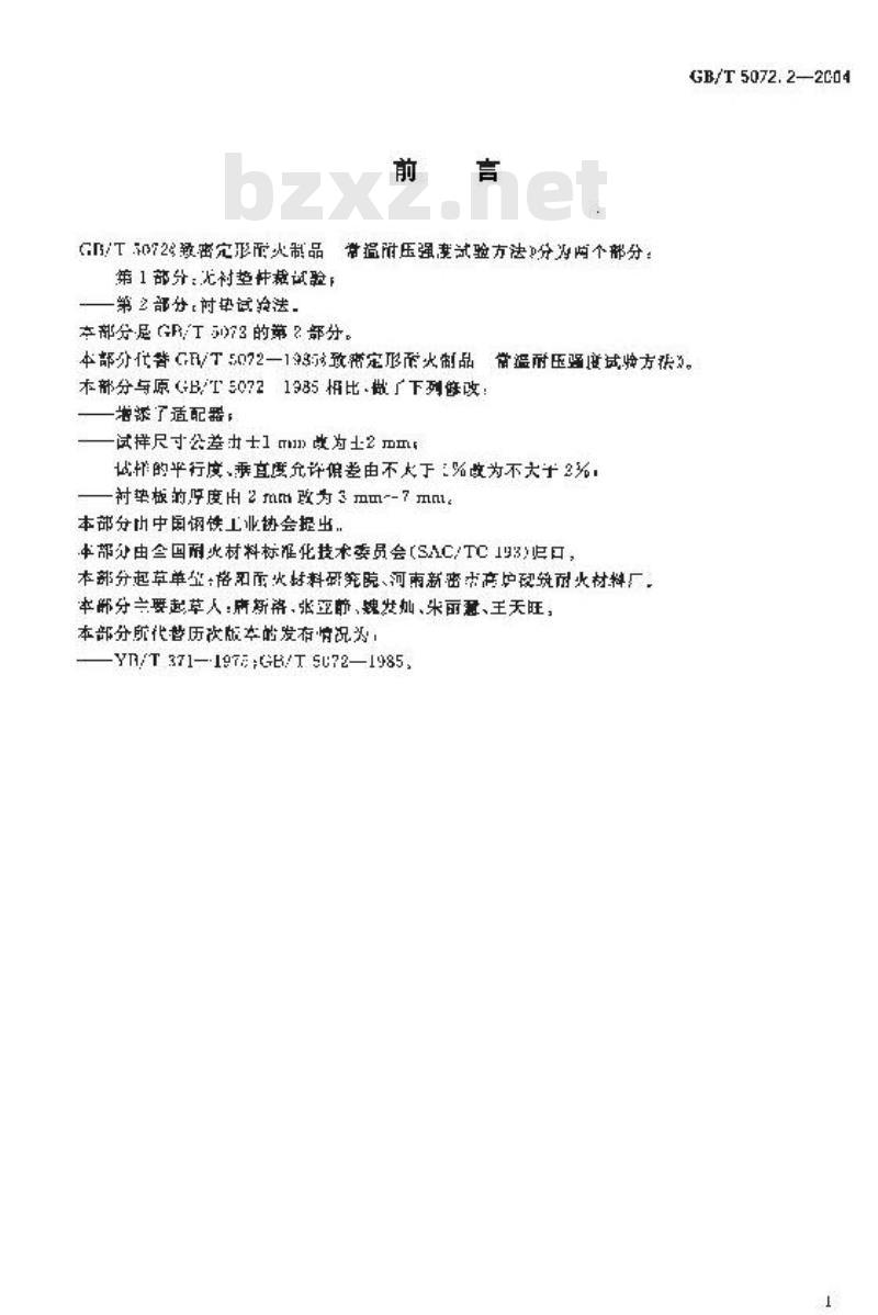 本部分代替GB/T5072—19致密定形而火制品常温耐压强度试验方张3。本部分与原(B/T50721985相比·截了下列修改:增添了适配器,