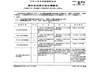 本标准适用于检验GB 3478.1-83《圆柱直齿渐开线花键(齿侧配合)模数 基准齿形 公差》中规定的、分度圆直径至180mm工件花键的圆柱直齿渐开线花键量规。 GB/T 5106-1985 圆柱直齿渐开线花键量规 GB/T5106-1985 标准下载解压密码:www.bzxz.net