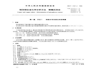 本标推规定了铜及铜合金中磷含量的测定方法。GB/T 5121.2:1996