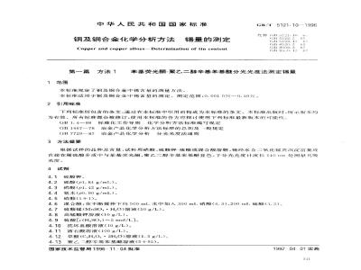 铜及铜合金化学分析方法锡量的测定Copper and copper alloys-Determination of tin content第一篇 方法 1