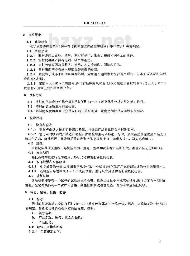 本标准适用于滤油箔片、电讯、仪表及机械制造零件使用的黄铜箔。 GB/T 5188-1985 黄铜箔 GB/T5188-1985 标准下载解压密码:www.bzxz.net
