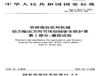 动出万间节传动轴安全版扩爵>总标题下,包括以下部本标冶口全国农业筑协标准化技术委员会归口本标起节单位,中国农业机械化料学研究院,落阴范拉机研流所。术标准主要起草人;张成胜、刘严彬、尚项绳。B:T5263.2—20DG