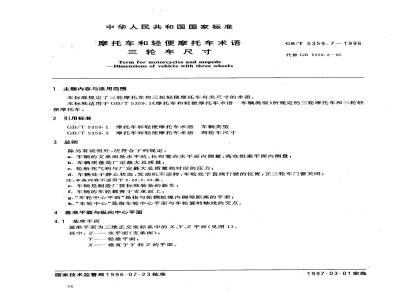 GB/T5359.1摩托车和轻便摩托车术语车辆类型GB/T5359.3摩托车和轻便摩托车术语两轮车尺寸3总则
