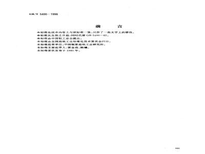本标准在技术内容上与原标准一致,只作了一些文字上的修改。本标准从生效之日起,同时代替GB5400—85。本标准由中国轻工总会提出。