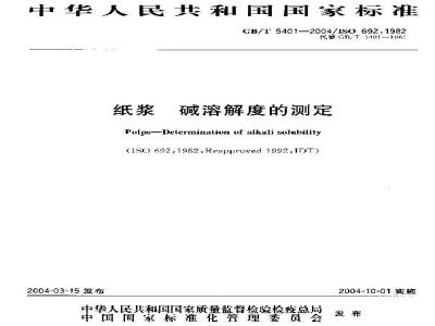 Pulps-Delermination of alkali solubility(10) 692:1982, ReaPproved 1992,IDT)2004-03-15发布