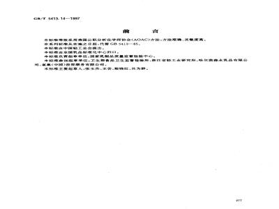 本标准等效采用美国公职分析化学师协会(AOAC)方法,方法准确、灵敏度高。本系列标准从实施之日起,代替GB5413一85。本标准由中国轻工总会提出。