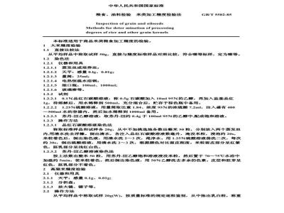 粮食、油料检验米类加工精度检验法Inspection of grain and oilseedsMethodsfordeterminationof processingdegrees of rice and other grain kernels本标准适用于商品米类粮食加工精度的检验。1大米精度检验