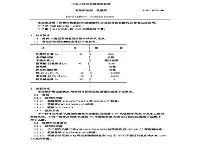 本标准适用于乳酸和氢氧化钙(或碳酸钙)合成而得的乳酸钙,用作食品添加剂。 GB 6226-1986 食品添加剂 乳酸钙 GB6226-1986 标准下载解压密码:www.bzxz.net
