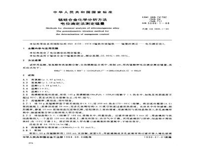 Methods for chemical analysis of silicomanganese alloyThe gravimetric met hod for the determinat ion of silicon content本标准适用于锰硅合金中硅量的测定。测定范围:8.00~30.00%。UDC 669.74' 782