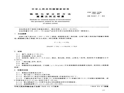 本标准适用于铬铁中碳量的测定。测定范围:4.00%~~10.50%。UDC 669. 15'26