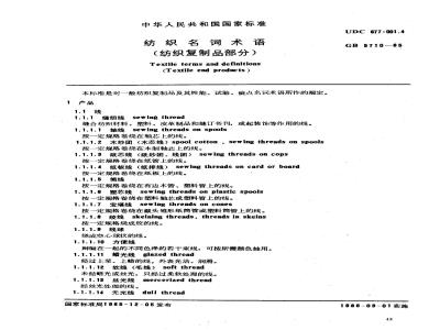 本标准是对一般纺织复制品及其性能、试验、疵点名词术语所作的规定。 GB/T 5710-1985 纺织名词术语(纺织复制品部分) GB/T5710-1985 标准下载解压密码:www.bzxz.net