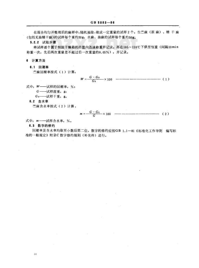 回潮率及含水率均取至小数后第二位。数字的修约应按GB1.1-81《标准化工作导则编写标准的一般规定》附录C数字修约规则(补充件)进行。44