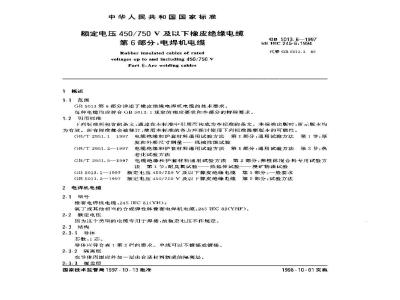 本部分详述了橡皮绝缘电焊机电缆的技术要求。每种电缆应符合GB 5013.1规定的相应要求和本部分的特殊要求。 GB 5013.6-1997 额定电压450/750V及以下橡皮绝缘电缆 第6部分:电焊机电缆 GB5013.6-1997 标准下载解压密码:www.bzxz.net