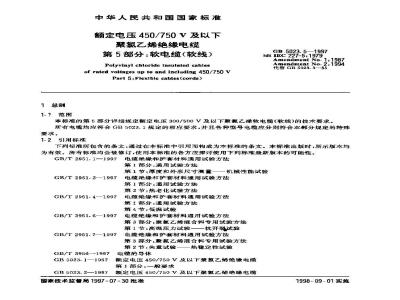 额定电压450/750V及以下聚氯乙烯绝缘电缆国家技术监督局 1997 -07 -30 批准1998-09-01实施