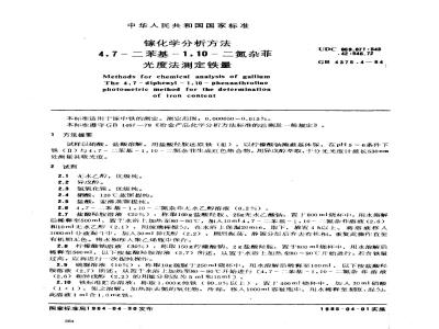 GB/T 4375.4-1984 镓化学分析方法 4,7-二苯基-1,10-二氮杂菲光度法测定铁量 GB/T4375.4-1984 标准下载解压密码:www.bzxz.net