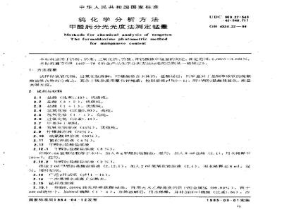 GB/T 4324.22-1984 钨化学分析方法 甲醛肟分光光度法测定锰量 GB/T4324.22-1984 标准下载解压密码:www.bzxz.net