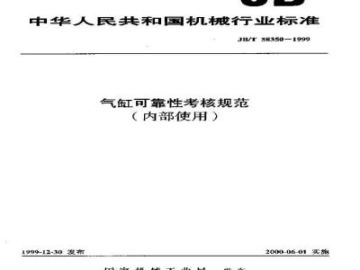 JB/T 58350-1999 本标准是对 JB/T 58350-92《气缸可靠性考核规范》的修订。 本标准规定了普通单杆双作用活塞式气缸的可靠性考核评定指标,验证试验方法和判定规则。 本标准适用于以压缩空气为工作介质、缸径为 32~320mm 的普通单杆双作用气缸的可靠性考核。 本标准于年月日首次发布。 JB/T 58350-1999 气缸可靠性考核规范 JB/T58350-1999 标准下载解压密码:www.bzxz.net