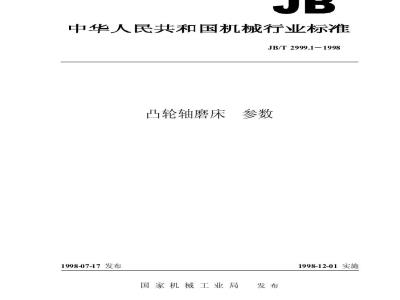 本标准与JB/Z172—81的主要差异是:一最大工件长度栏增加了315mm的规格:一增加了头尾架锥孔的型式和尺寸。本标准是凸轮轴磨床系列标准的一部分。JBT2999在《凸轮轴磨床》总标题下,包括以下三个部分: