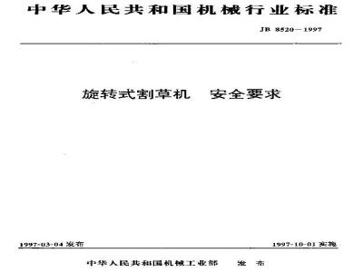 3.8制机应设有主运编状数析侯划部部分稳定的锁定装查,3.制草机任运状态时,其离地臣离应7于200U3.1D安发举施转轴上的刀盘等能转体,必须有可需的锁案装置,3.11刀片成符合N141的规或,与盘操接应安金可。机械工业部19973心4批准