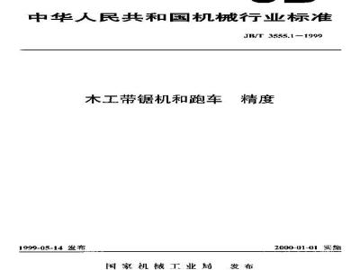 JB/T 3555.1-1999 本标准是对 JB 8088-95《木工带锯机和跑车 精度》的修订,修订时仅按有关规定进行编辑性修改,技术内容未改变。 本标准规定了木工带锯机和跑车的几何精度和工作精度的要求及检验方法。 本标准适用于木工带锯机和跑车。不适用于细木工带锯机和卧式木工带锯机。 本标准于 1989 年 3 月 13 日以 GB 10956-89 首次发布,1996 年调整为 JB/T 8088-95。 JB/T 3555.1-1999 木工带锯机和跑车 精度 JB/T3555.1-1999 标准下载解压密码:www.bzxz.net
